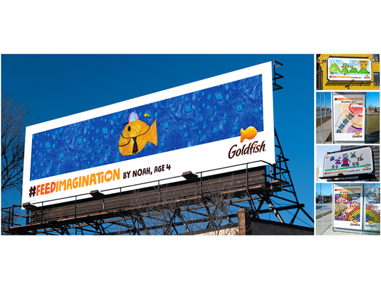 “Feed Imagination” is a series of billboard ads by Goldfish. The ads feature large-scale images of drawings completed by customers in the market who published their drawings on social media and tagged them with “#FeedImagination.” The campaign is a crowdsourcing effort in which Goldfish fans can have their drawings displayed on a billboard.